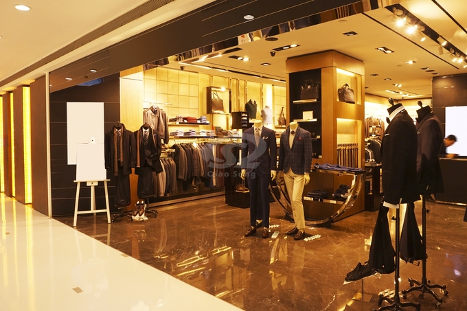 This man's apparel store is a flagship-type and set in a shopping mall.