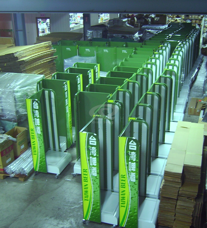 The marketing team usually does the plan before the campaign and thinks about how to set the venue who use the display rack for promotional products, such as beer, chips, candy, cereal, and drip bag coffee. It is good to put in convenience stores and supermarkets.