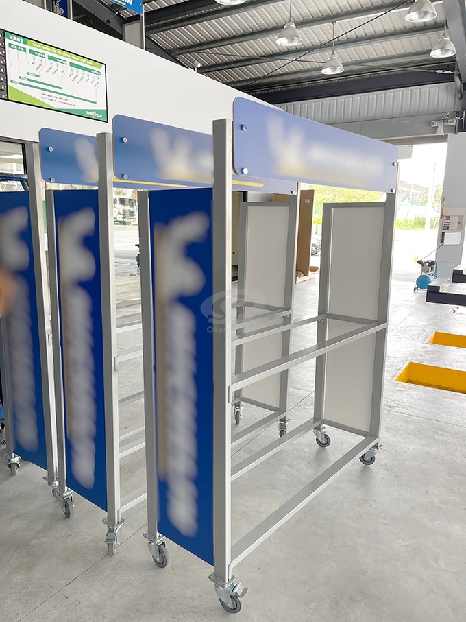 商業広告はラックの上部と側面に配置するのに適しています。従来のタイヤドリーに代わる、より効果的でアップグレードされたこの代替品をお楽しみください。