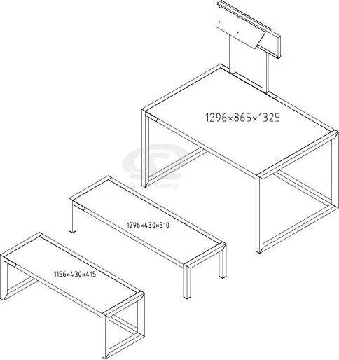 The middle table: W1300 * D400 * H500mm (51.18"W x 15.75"D x 19.69"H)